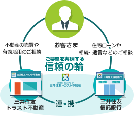 三井住友トラストグループの総合力で、住まいの売却・購入の仲介だけでなく、資産の運用や住宅ローンのご提案、相続・遺言のご相談など幅広いサポートをワンストップでご提供します。