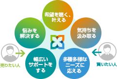 一つひとつのご相談の背景にはお客さまの歴史があり、人生があります。地域に精通した専任担当者が、お客さまお一人お一人のニーズや想いをしっかり受け止め、迅速かつ丁寧に対応いたします。お客さまのお役に立ち、お客さまに満足していただくことが私たちの想いです。