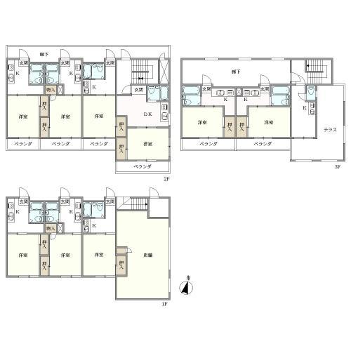 間取り 1K×8戸、1DK×1戸、事務所×1戸、倉庫(若しくは事務所)×1戸