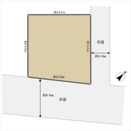 角地 南東8.0m公道、間口:13.2m 北東4.0m公道、間口:14.5m |