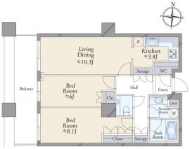 間取り 2LDK 専有面積 67.89m2(20.5坪) 壁芯