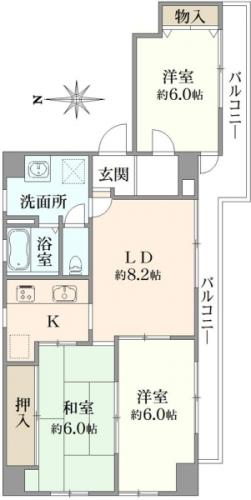 間取り 3LDK 専有面積 61.96m2(18.7坪) 壁芯