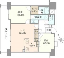 間取り 2LDK 専有面積 54.28m2(16.4坪) 壁芯