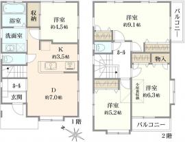 土地面積 101.00m2(30.5坪) 登記簿 別途私道負担23.75m2 建物延面積 90.26m2