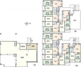 専有面積:43.46m2~50.09m2/住戸数:9戸/・PM費:月額賃料×3%(税込)、BM費:27,390円/月額(設備清掃管理料・緊急一時対応料)・2DK(9戸)、店舗(1戸)、倉庫(1戸)、駐車場1台/設備:都市ガス、公営水道、本下水/エレベーター無都市計画法他制限:準防火地域