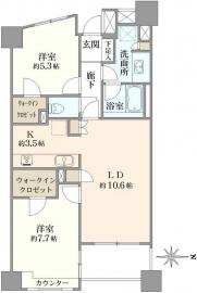 間取り 2LDK 専有面積 62.79m2(18.9坪) 壁芯