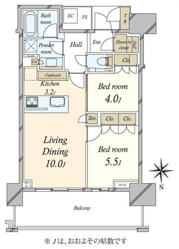 間取り 2LDK 専有面積 55.58m2(16.8坪)