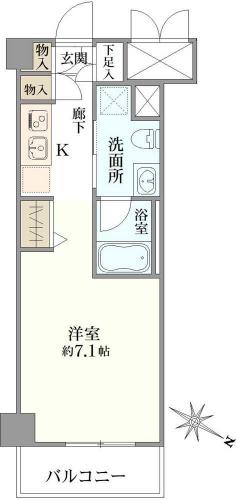 間取り 1R 専有面積 23.49m2(7.1坪) 壁芯