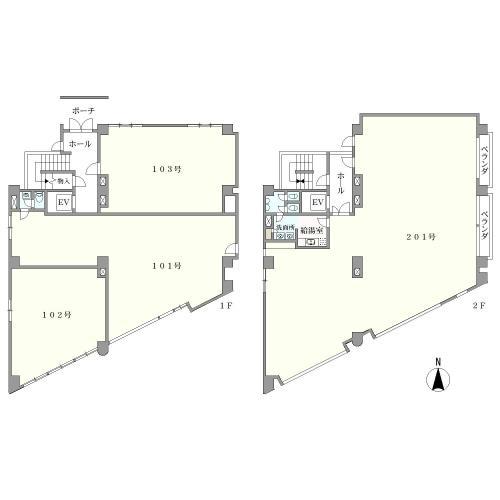 ※売買対象:1階部分(101号・102号・103号)、2階部分(201号)