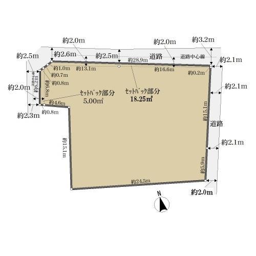 接道状況 二方 北約2.5m公道、間口:約28.9m 西約2.3m公道、間口:約6.2m