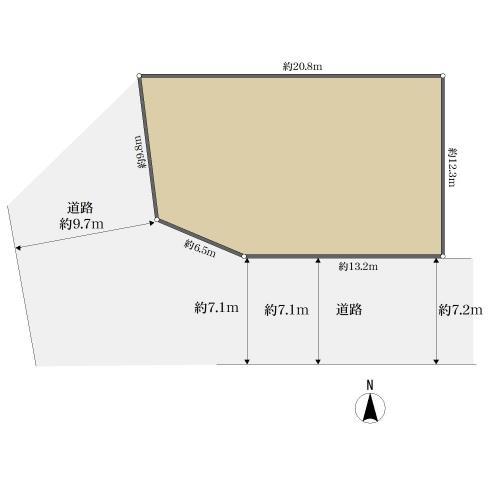 二方 西約9.7m公道、間口:約9.8m 南約7.1m公道、間口:約13.2m |