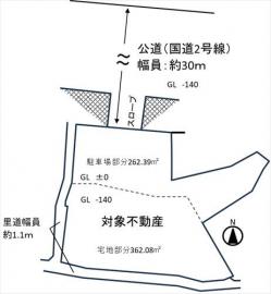 地目:宅地・雑種地・畑■敷地の一部を月極駐車場として賃貸中(解約予定)土地面積:624.47平米(1.但し古家あり2.土地の地勢は2段宅地:宅地部分:362.08平米、駐車場部分262.39平米)