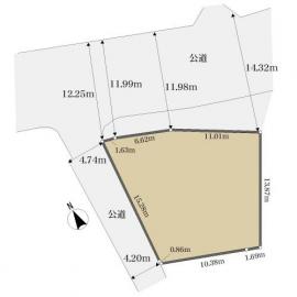 角地 北約12.2m公道、間口:約19.2m 西約4.2m公道、間口:約16.1m |