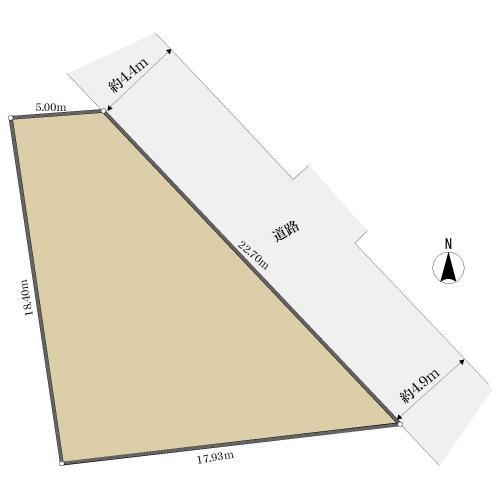 一方 北東約4.4m公道、間口:22.7m(位置指定道路) |