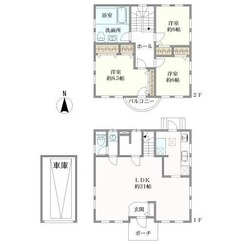土地面積 126.91m2(38.3坪) 登記簿 建物延面積 127.33m2 車庫部分15.04m2含む