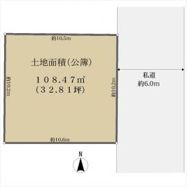 108.47m2(32.8坪) 登記簿 別途私道負担375㎡のうち持分37500分の2012、344㎡のうち持分34400分の1830 |