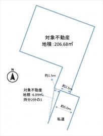 土地面積 206.68m2(62.5坪) 登記簿 別途私道負担166㎡(持分8分の1)