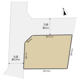 接道状況 角地 西5.9m公道、間口:8.1m 北5.0m公道、間口:12.5m