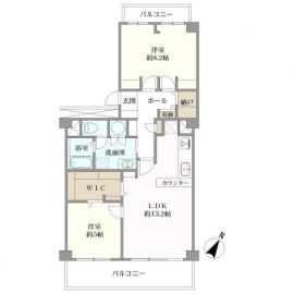 間取り 2LDK 専有面積 74.80m2(22.6坪) 壁芯