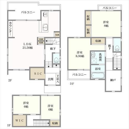 ◆WIC(WIC=ウォークインクローゼット)やSIC(SIC=シューズインクローゼット)はじめ豊富な収納付き