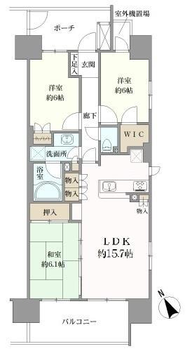 間取り 3LDK+WIC 専有面積 76.26m2(23.0坪) 壁芯