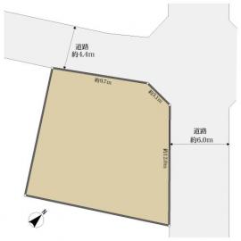 角地 北西約4.4m公道、間口:約9.7m 北東約6.0m公道、間口:約12.0m |
