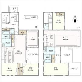 建物1階のLDKは、引き戸開放時約22.8帖ございます。2階には大きなベランダがあり、洋室約9帖のスペースは主寝室や、間仕切りを入れてお子様部屋にいかがでしょうか。元々二世帯住宅仕様で建築されていますが、単世帯住宅として間取り変更のリフォームを行うことも可能ですので、是非一度ご検討ください。