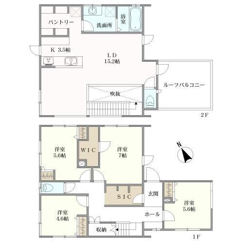 2階にはリビングと繋がるルーフバルコニーもあります。