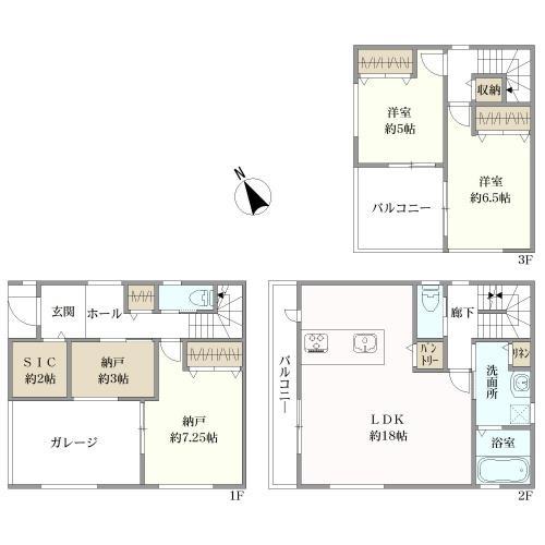土地面積 71.48m2(21.6坪) 登記簿 建物延面積 118.53m2 車庫部分13.63m2含む