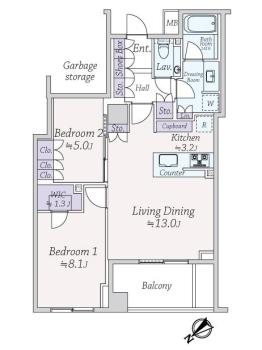 間取り 2LDK 専有面積 68.82m2(20.8坪) 壁芯