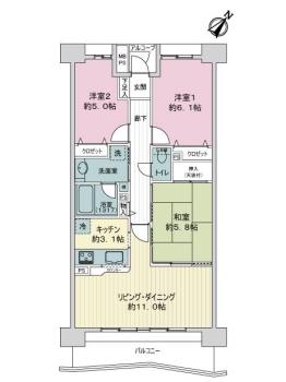 間取り 3LDK 専有面積 68.82m2(20.8坪) 壁芯