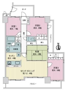 間取り 4LDK 専有面積 88.84m2(26.8坪) 壁芯