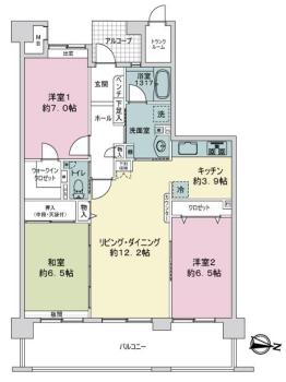 間取り 3LDK 専有面積 82.82m2(25.0坪) 壁芯