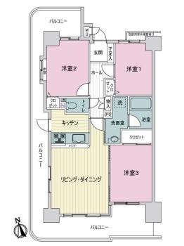 間取り 3LDK 専有面積 65.78m2(19.8坪) 壁芯