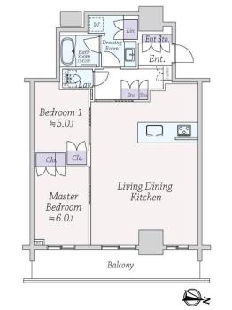 間取り 2LDK 専有面積 73.92m2(22.3坪) 壁芯