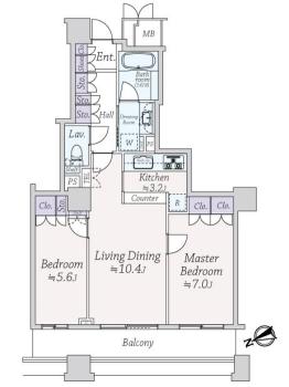 間取り 2LDK 専有面積 61.73m2(18.6坪) 壁芯