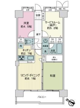 間取り 2SLDK 専有面積 58.50m2(17.6坪) 壁芯