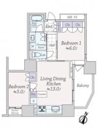 間取り 2LDK 専有面積 57.77m2(17.4坪) 壁芯
