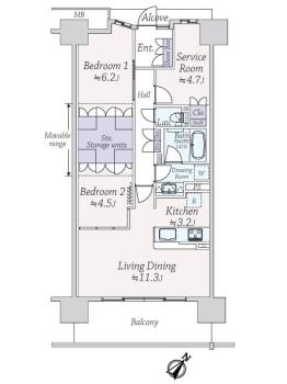 間取り 2SLDK 専有面積 71.39m2(21.5坪) 壁芯