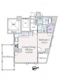 間取り 1LDK 専有面積 53.76m2(16.2坪) 壁芯