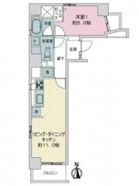 間取り 1LDK 専有面積 42.60m2(12.8坪) 壁芯