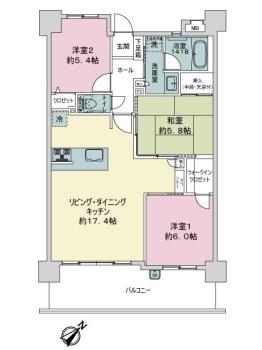 間取り 3LDK 専有面積 74.09m2(22.4坪) 壁芯