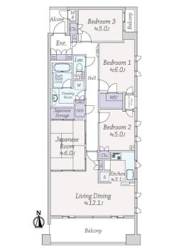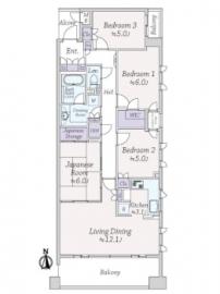 間取り 4LDK 専有面積 87.94m2(26.6坪) 壁芯
