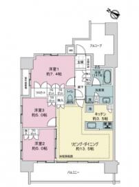 間取り 3LDK 専有面積 75.19m2(22.7坪) 壁芯