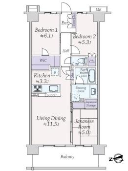 間取り 3LDK 専有面積 70.80m2(21.4坪) 壁芯