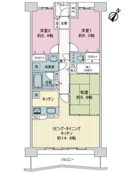 間取り 3LDK 専有面積 71.73m2(21.6坪) 壁芯
