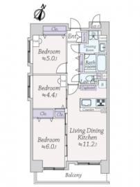 間取り 3LDK 専有面積 61.27m2(18.5坪) 壁芯
