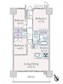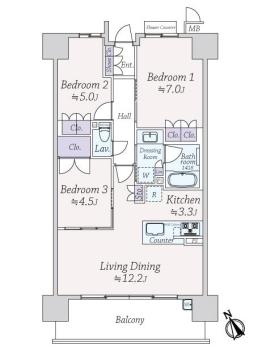 間取り 3LDK 専有面積 68.85m2(20.8坪) 壁芯