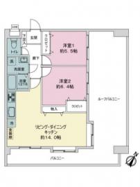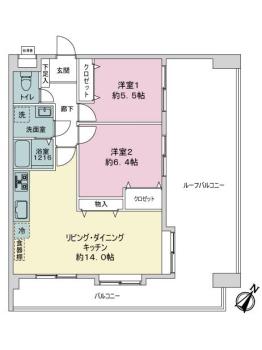 間取り 2LDK 専有面積 58.74m2(17.7坪) 壁芯