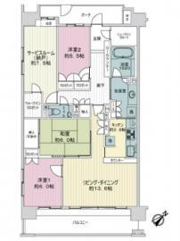 間取り 3SLDK 専有面積 102.46m2(30.9坪) 壁芯